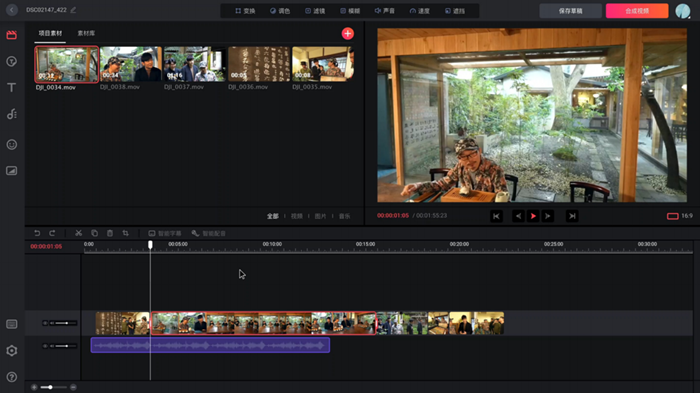 此外,基于快手最新研发的音视频增强算法能力,快手云剪还提供了智能封面、自动配音、自动字幕、画质增强、视频去抖、自动横屏转竖屏等系列智能工具。