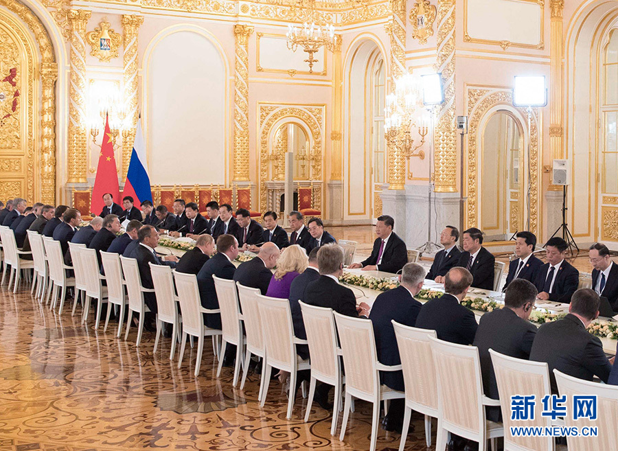 6月5日,国家主席习近平在莫斯科克里姆林宫同俄罗斯总统普京会谈。新华社记者 谢环驰 摄