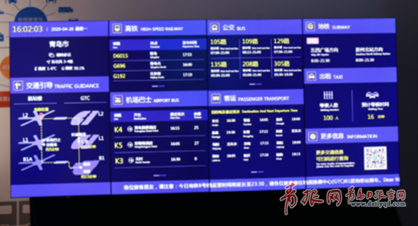“在旅客到达口、前往换乘中心连廊两侧等必经之处,我们安装了智能诱导屏,向旅客全面、实时展示当前机场各交通方式运行状态,如高铁发车时间、公交线路及运营时间、长途客运线路、车次及余票信息、出租车实时等候人数及候车时间等,乘客可通过屏幕显示的交通方式及换乘诱导信息,简单快速地了解到选择哪种交通方式最为方便、快捷。”海信枢纽解决方案工程师方永祥介绍说。