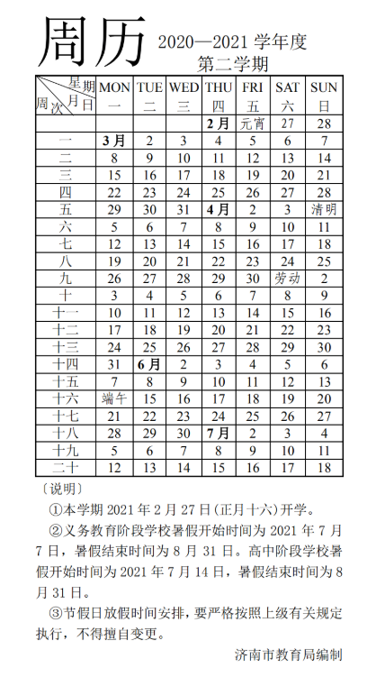 2021年2月1日(腊月二十):义务教育学校(小学和初中)学生寒假开始;