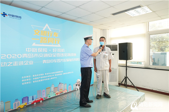 青岛新闻网9月25日讯(记者 丁淑华 摄影 孙志文)为了倡导“安全、文明、责任”的驾驶行为,减少交通事故的发生,青岛市文明办、青岛市公安局交警支队联合中路财产保险股份有限公司、青岛新闻网共同举办的“文明行车一路同行”——中路保险·好司机2020青岛市交通安全零违法挑战赛,9月25日,交通安全宣传系列活动走进企业,第一站来到了青岛中车四方车辆物流有限公司。