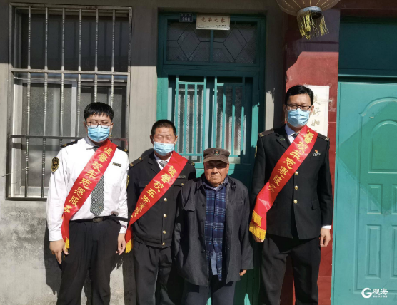 今天青岛公交集团物资供应分公司工作人员前往抗美援朝老兵黄金印家中,将抗美援朝纪念章送至老兵手中。