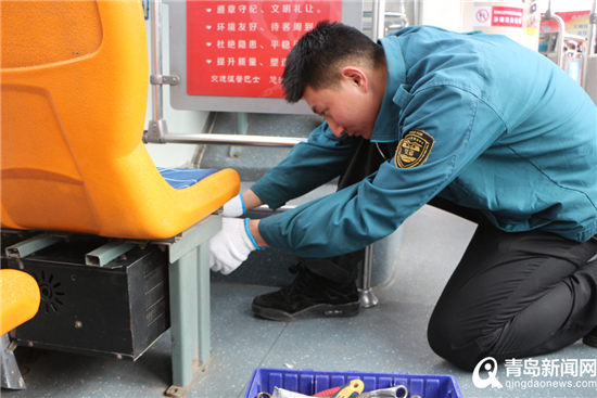 8日上午,在青岛城运控股交运温馨巴士高新区分公司新韵路公交场站,机务工作人员张广健正在给773路公交车修复和更换门窗密封胶条、加装防冻液、检修车载暖风机系统,保证供暖设备齐全有效并调试到了最佳状态。“这些供暖设施是通过防冻液导热,将发动机的余热供到车厢里,让车厢保持温暖如春的环境。”温馨巴士机务科负责人姜世生表示,寒冬纯电动公交车的电池充电和放电效能有所降低,应对寒冬纯电动公交车已启动电池仓保温模式,使电池仓保持一定的温度,保证纯电动公交车正常运行供暖。