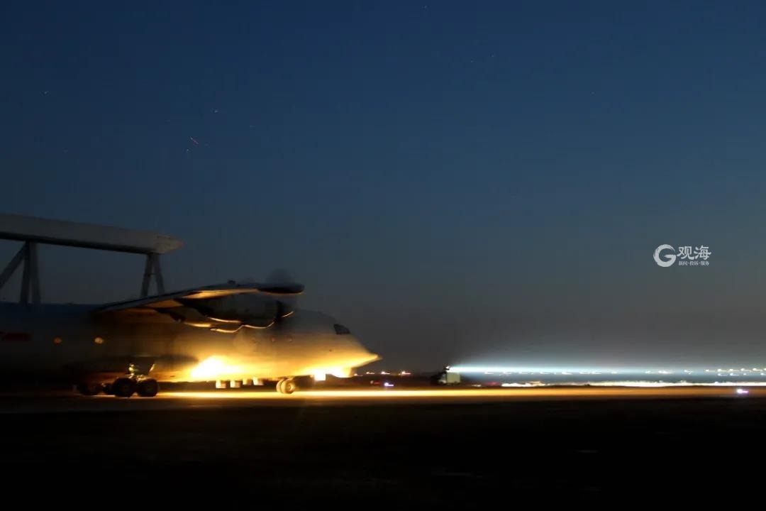 一年之际在于春,眼下又到了年度飞行训练的黄金期。子夜零时,跑道上闪烁的灯盏仿佛七色彩带,护送着一架架战鹰高飞远航。图片来源:北海舰队