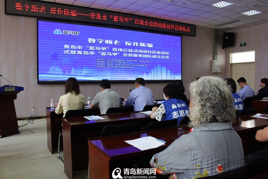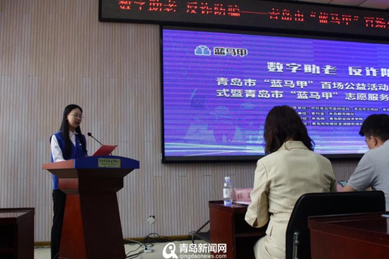 青岛新闻网6月7日讯 6月7日,由中共青岛市委网信办、青岛市文明办、青岛市公安局指导,支付宝、半岛都市报社发起,半岛网、青岛职业技术学院、青岛市志愿服务学院承办,青岛市市南区金湖路街道办事处协办的“数字助老 反诈防骗”——青岛市蓝马甲百场公益活动进社区正式启动。蓝马甲公益行动将为青岛市老年人提供智能手机使用、防骗知识及金融安全教育等适老化公益服务,帮助老年人跨越数字鸿沟。启动仪式现场,青岛市蓝马甲志愿服务团队正式成立,将依托青岛职业技术学院开展助老公益服务。