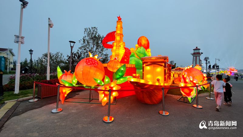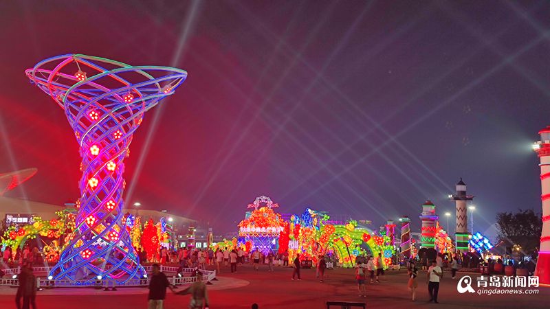 青岛新闻网7月12日讯(记者 陈志伟)7月12日晚,青岛新闻网记者在青岛西海岸新区金沙滩啤酒城看到,一组组花灯亮起,整个园区流光溢彩。