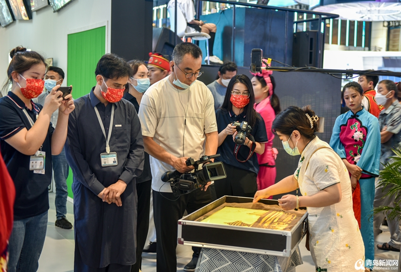 青岛综合展区刚刚开馆,美妙的歌声就吸引了众多参观者驻足。来自青岛网茂凯艺传媒有限公司旗下的艺人,组成了青岛原创音乐“天团”,他们用一首首原创作品,展示了青岛时尚、热情、青春的城市形象,赢得现场观众阵阵掌声。