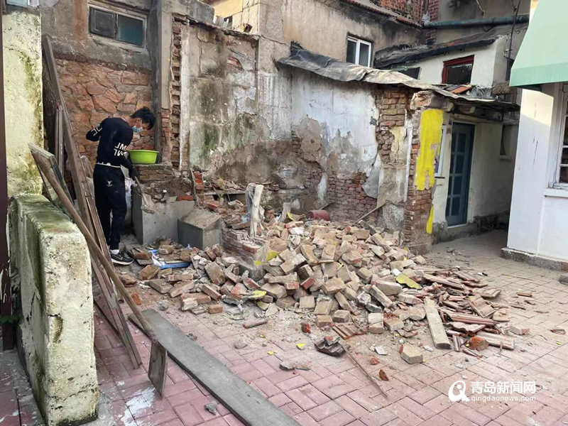 江苏路街道综合执法中队本着“拆违不拆心”的原则,以“暖人心、稳人心、聚人心”为目标,联合街道社区等多个部门多次进行现场查看,并提前与当事人进行沟通。经了解,黄县路7号院内一处违章建筑,为60年代所建,年久失修,墙体存在倒塌风险,存在安全隐患,社区联合中队多次做当事人工作,当事人同意拆除,龙江路38号在走廊尽头搭建违建一处,占堵消防通道,社区多次上门做工作,于近期一并拆除。
