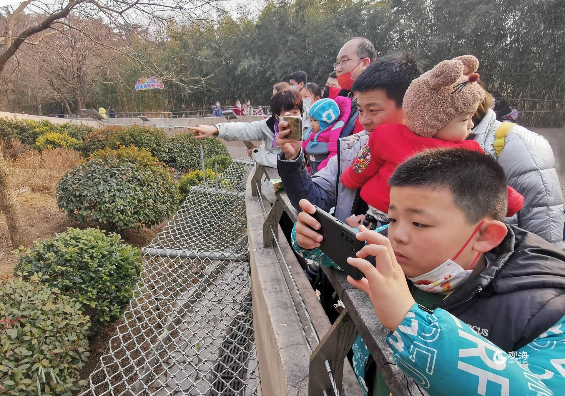 众多市民专程带着孩子来熊猫馆看“冰墩墩”的“青岛分墩”,大熊猫憨态可掬又顽皮精明的样子引来游客们的阵阵欢笑。(青岛日报/观海新闻记者 赵健鹏 摄影报道)