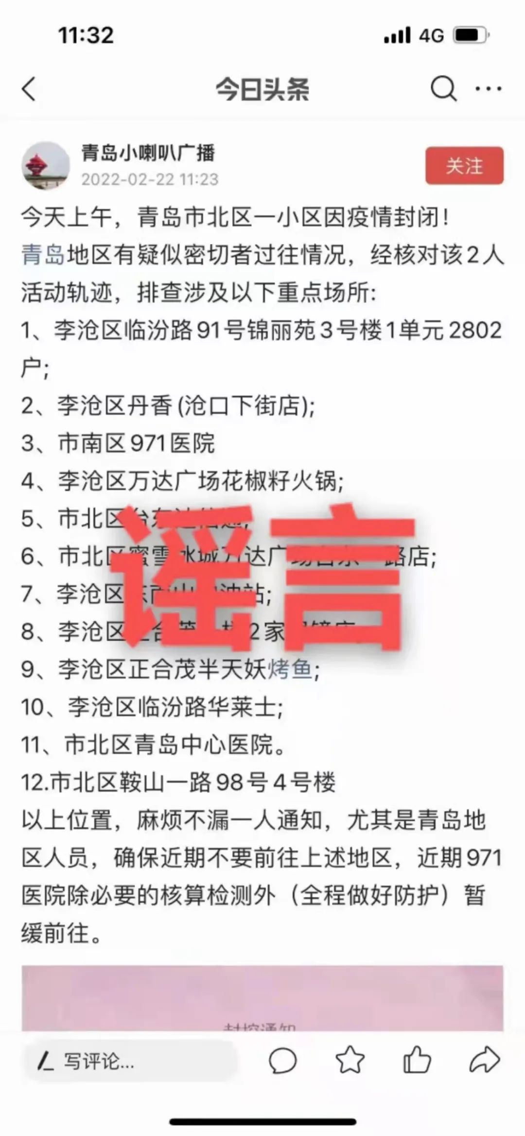 该病例近期未曾来到我院,目前海军971医院正常开诊,请关注官方发布的权威信息,不信谣、不传谣、不造谣。我们全心全意为驻青官兵和岛城人民的健康保驾护航!