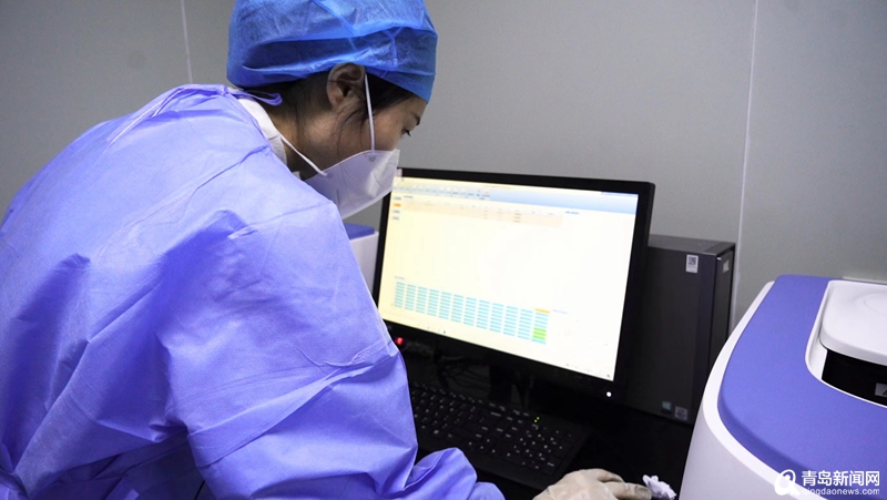 市南区疾控中心检验科,与病毒“赛跑”的是清一色的娘子军,10个人分为两个小组,12小时一班,昼夜不歇,24小时运转,满负荷运行,每天大概能完成2000份的核酸检测量。