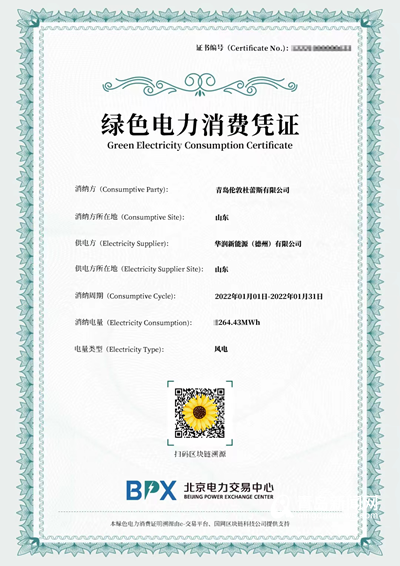 青岛新闻网7月12日讯(记者 任俊峰)2022年6月8日,山东省首批绿色电力消费凭证正式下发。在北京电力交易中心、山东电力交易中心精心组织下,国晟新能作为山东省内专业代理售电公司,为客户青岛伦敦杜蕾斯有限公司全额购买到所需绿电,涵盖风电、太阳能,助力企业能源转型升级。