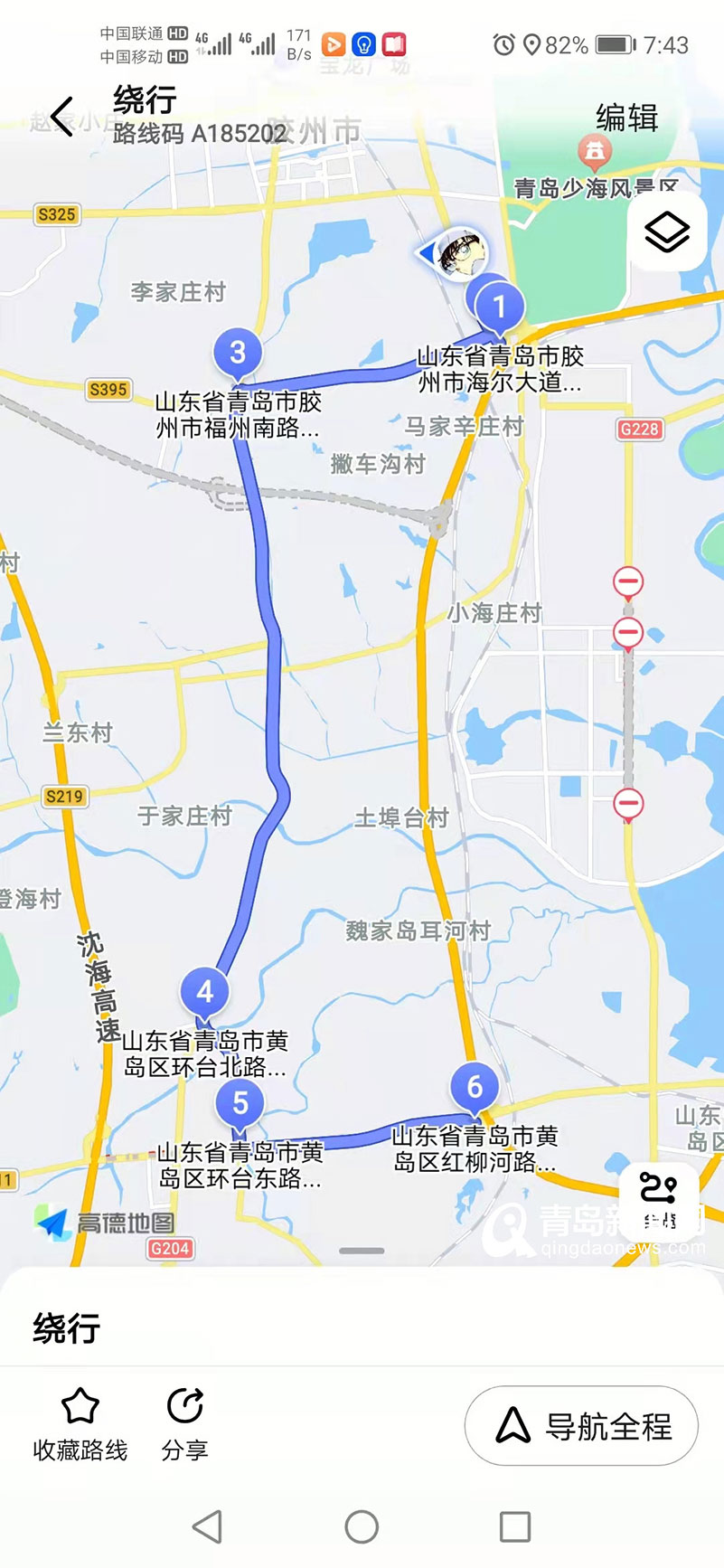 经现场实际考察,该路线畅通,满足大型车辆与小型车辆通行要求,具体路线如下:胶州收费站→海尔大道→惜苑路→G204国道→118乡道→环台东路→311省道→红柳河路→红石崖收费站。