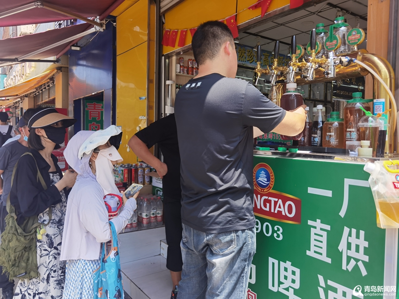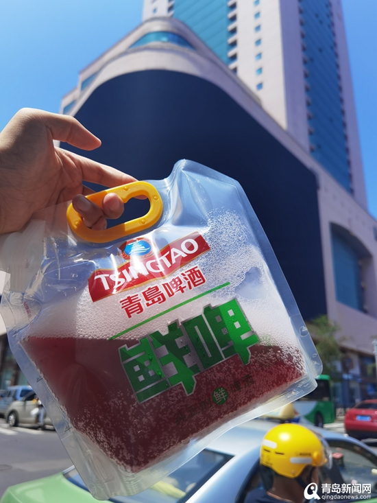 除了奶茶店,中山路上的小店目前都开始经营起了青啤直供,经典的“塑料袋装啤酒”又成为了中山路上的一大“主角”。一家店主介绍,“这几天确实火,啤酒一晚上能卖掉100多斤!现在大家好像更喜欢一款蓝莓果啤,一斤15元,不少女士都买这个,特别火!”