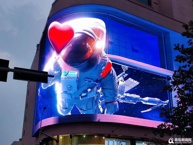 据介绍,成为上街里啤酒节热门话题的中山路巨幅裸眼3D大屏,高27.84米,长50.88米,面积超过1400平米,堪称中国最具视觉冲击力的裸眼3D创意大屏。本次在啤酒节期间播放的“宇航员比心”以及“打开青岛历史城区盲盒”等内容,火爆短视频平台,成为当之无愧的本地热点。