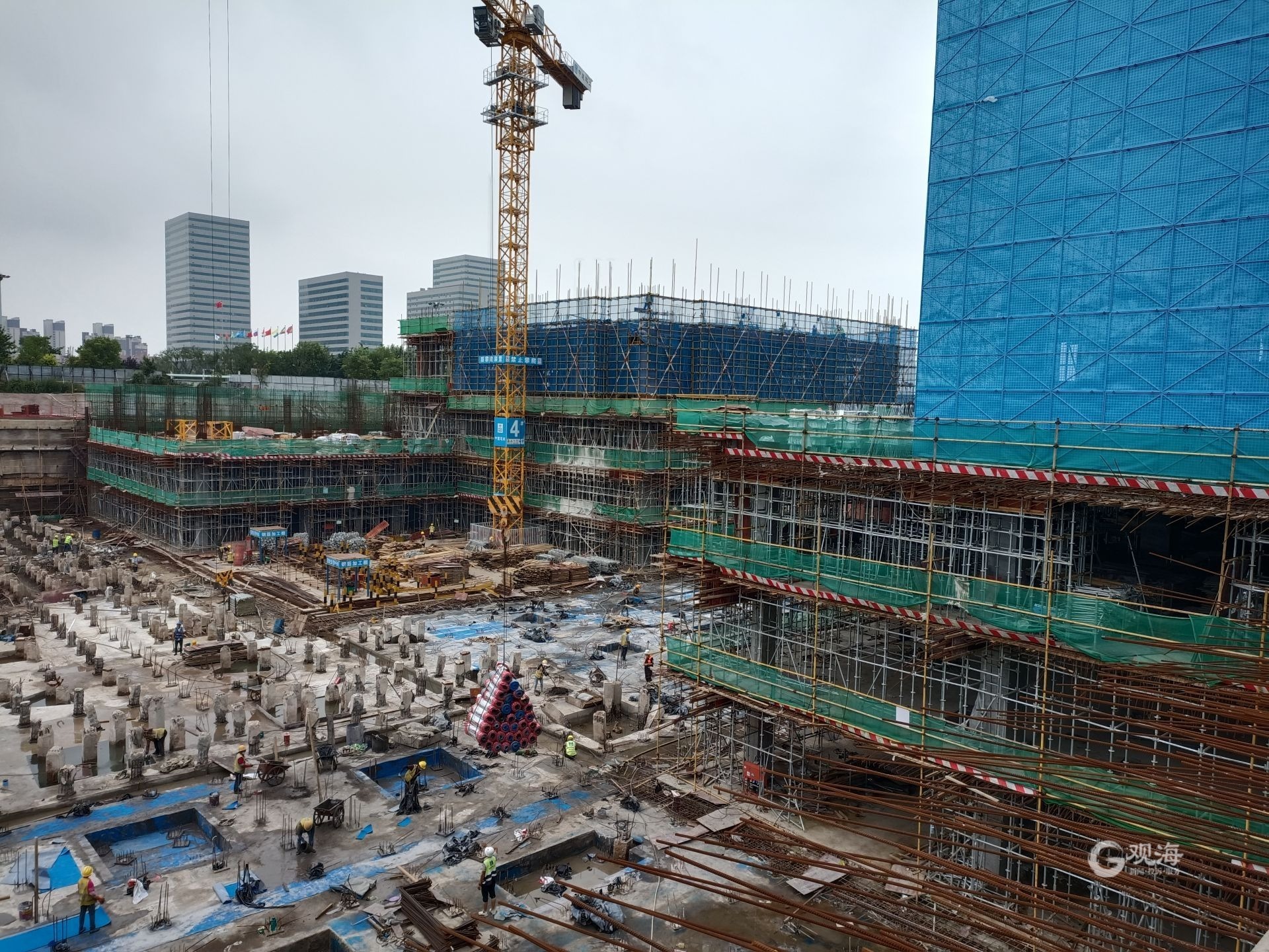 施工现场塔吊林立,钢结构建筑拔地而起,工人有条不紊,到处是一派热火朝天的建设场景。现场相关负责人介绍,目前,各项目组正在进行紧张作业,朝着年底主体结构封顶的目标冲刺。值得一提的是,外立面将采用环保玻璃幕墙及轻钢龙骨材料,整个外立面以垂直线条为韵律,通过竖向龙骨截面的变换,光照产生的反射与折叠构件和玻璃幕墙的强反射结合,将呈现明亮开放的建筑形象。