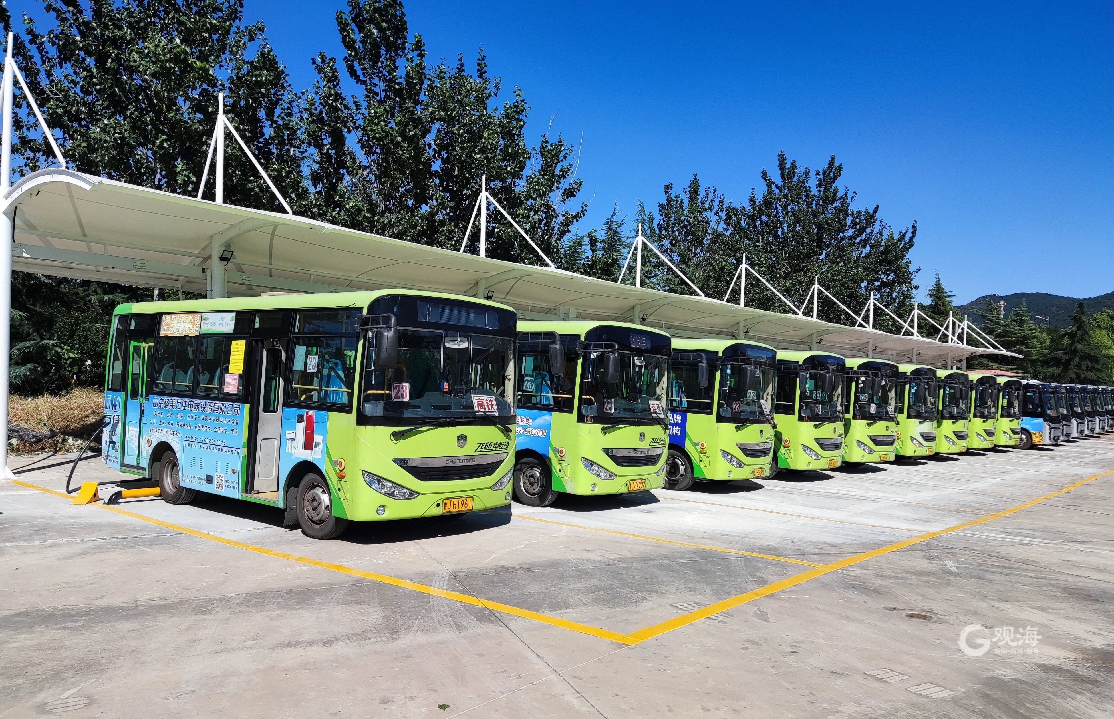 泰安公交一公司环湖路充电站设计充电车位16个,共配备大功率快速充电终端8台,装机总功率960KW,单枪充电功率在60-106KW,将有效提升泰安市新能源公交线路的充电效率,预估每年减少的碳排放量相当于新增2.16亩森林。