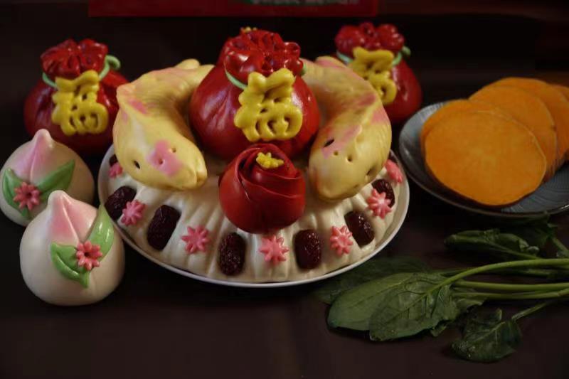 青岛新闻网3月27日讯 近期,一款名叫“留娘糕”的王哥庄花样大馒头在微信朋友圈和微信群走红。“留娘糕是源自民间流传的一种说法,闰月时儿女做花糕,为母亲祈福。”崂味道创始人公语介绍说,很多年轻人不仅给母亲买,也给父亲以及公公婆婆购买,以此表达美好的祝福。“最近订单很火,也可以根据客人的情况进行个人定制。”公语说道,在做法上也大有讲究,“因为按照传统历法,闰月这一年有十三个月,留娘糕周边要放13颗红枣,表达对父母身体结结实实的愿望。通常都有鱼,来表达对父母健康长寿之意,鱼和‘余’是谐音,也有年年有余之意。其他还有如寿桃、福袋、金元宝等,搭配上五颜六色的配饰,寓意着健康、幸福、吉祥的‘留娘糕’。”