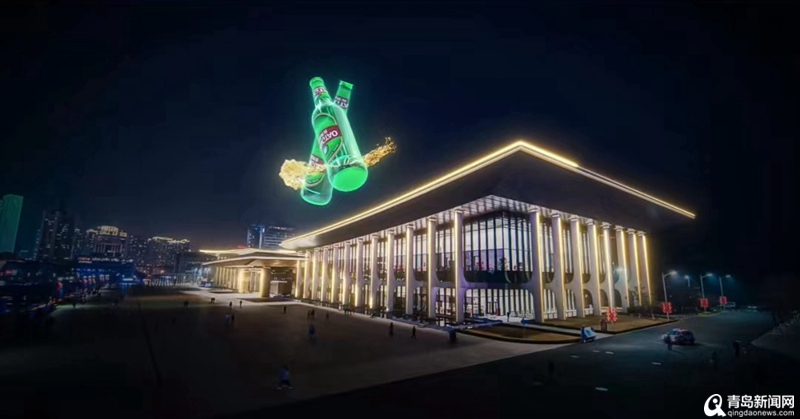 以星空为幕,一场AR互动灯光秀美轮美奂,开启盛会的夜晚。青啤干杯洋溢出的酒液,绚烂如礼花绽放天地之间。