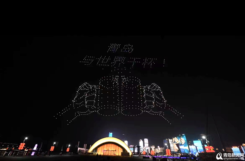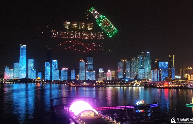 夜幕美景,沉醉于心。伴随着灯光秀的震撼画面,炫目的光影画卷又一次在天幕铺开,“青岛啤酒为生活创造快乐”“青岛与世界干杯”,无人机酷炫表演,在省旅发大会时间里,点亮了青岛浮山湾的夜空。