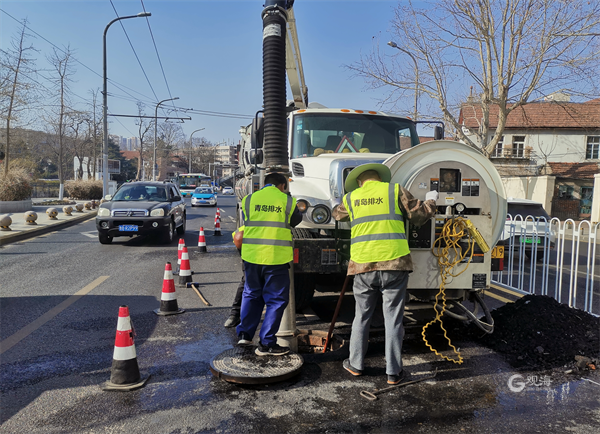 强化汛前管网设施养护保障。启动“汛前排水设施巡查养护”专项行动,集中对雨水管道淤积堵塞、雨水箅子破损、排水管道设施损坏等问题开展专项整治清淤,累计对环湾路、青海路、寿光路、燕儿岛路等道路排水管线拿砂养护37.2公里,疏通堵塞雨水支管21处,维修、更换损坏排水设施68处。4月1日,根据气象信息预警,利用周末时间继续对洛阳路四流南路路口、金水路黑龙江路路口等重点区域、重要积水点周边排水设施开展雨前排查、养护工作,对雨水支管进行疏通性检查,对易顶盖检查井进行重点排查,保证降雨期间排水设施正常运行。
