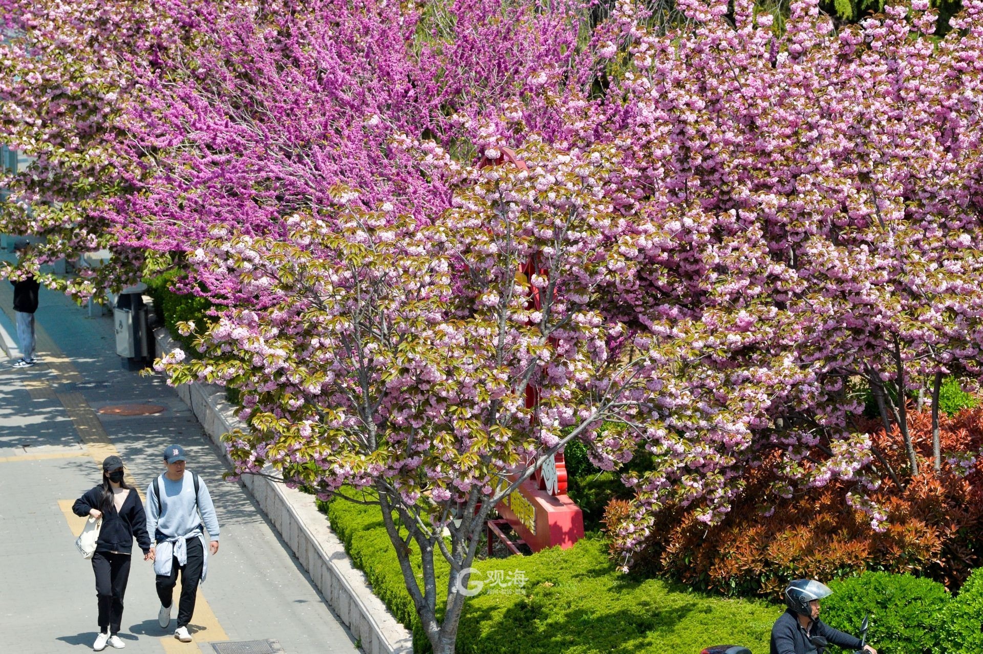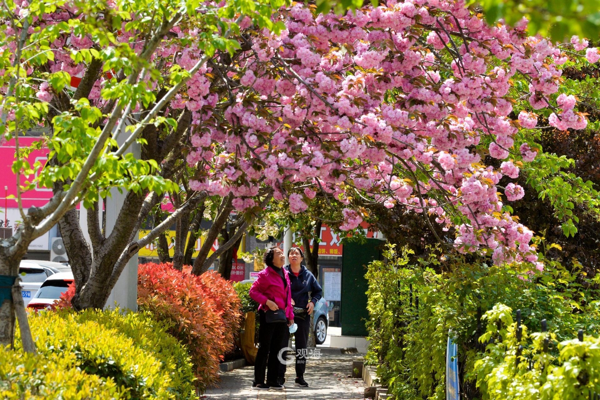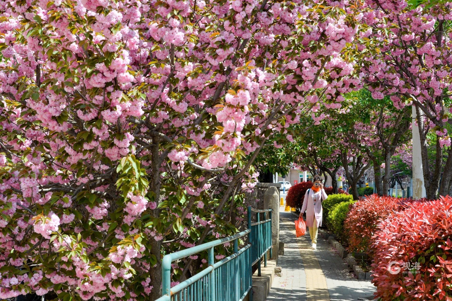 在市北区同安路有一个樱花小镇。眼下,双樱盛开,道路两侧的樱花树上挂满了红色、粉色、淡绿色的双樱,十分夺目。据悉,同安路这段樱花路西至福州北路、东至劲松一路,共栽植了230余棵樱花树。每年4月下旬,樱花小镇的樱花次第开放,浪漫的花朵释放出春日的芬芳与活力,构成了这个季节一道美丽的风景。(青岛日报/观海新闻记者 于滈 摄影报道)