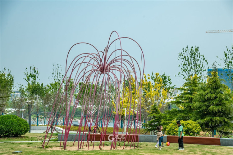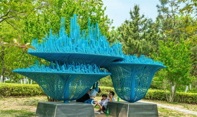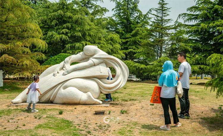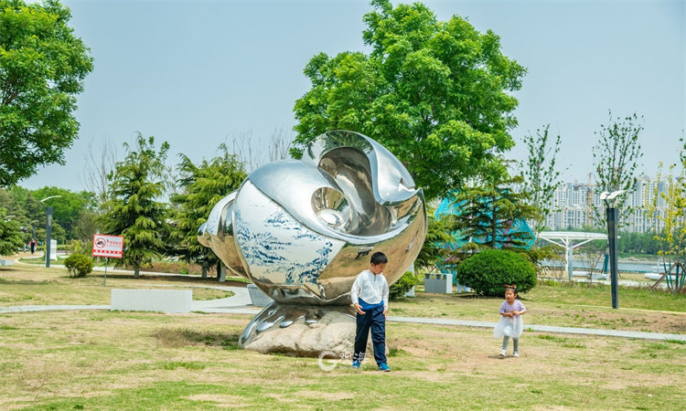 初夏时节,位于高新区的澜湾艺术公园绿树葱茏,河水清清。作为青岛网红打卡地,公园内随处可见中外艺术家的雕塑创作。不少市民在初夏时节打卡艺术公园,或在雕塑前驻足,或与雕塑同框,感受公园浓厚的人文气息。(杨志文 摄影报道)