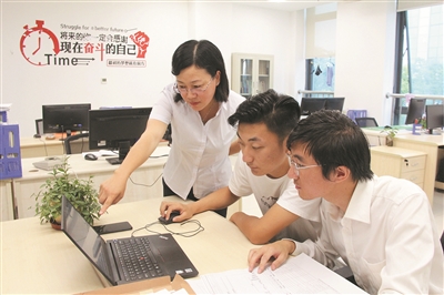 即墨区行政审批服务局工作人员现场指导奇瑞项目人员网上申报。