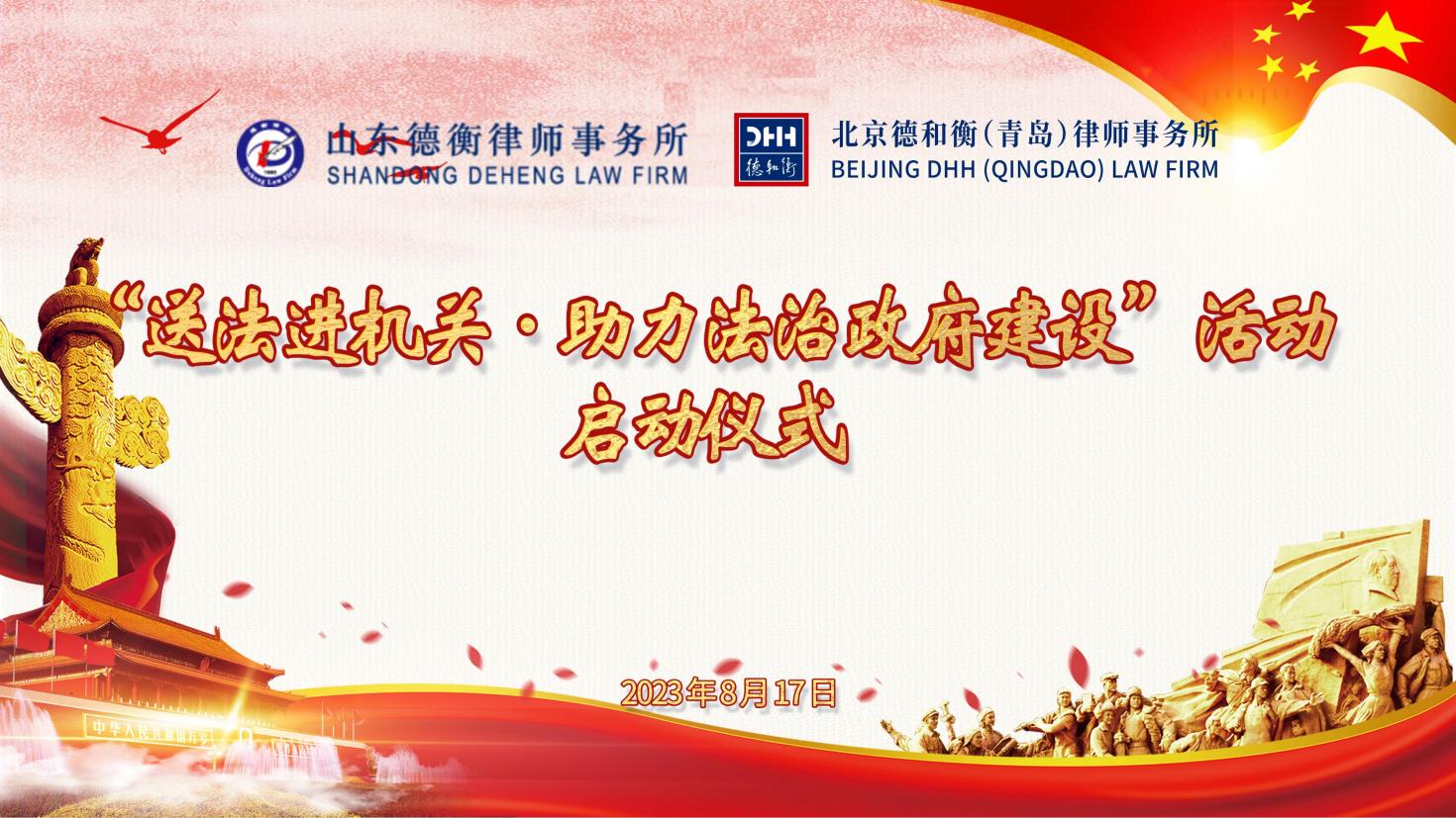 为积极响应和贯彻落实司法部党组对广大律师提出的“五点希望”,结合中共中央办公厅、国务院办公厅印发的《关于建立领导干部应知应会党内法规和国家法律清单制度的意见》文件精神,8月18日上午,山东德衡律师事务所(以下简称德衡所)、北京德和衡(青岛)律师事务所(以下简称德和衡青岛所)联合开展的“送法进机关·助力法治政府建设”活动(以下简称活动)正式启动。活动面向青岛市及各区市机关单位开展领导干部应知应会法律法规宣讲,切实履行德衡、德和衡律师的社会责任、积极助力法治政府建设。