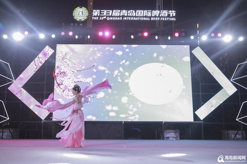 晚上6点多,已有不少动漫迷到场等待参加活动。会场内,惊喜与梦幻交织,国风漫展的“魔力”在这里得到了淋漓尽致的展现。当晚7点,第33届青岛国际啤酒节(崂山)“乐在崂山 国风一夏”动漫嘉年华正式启幕,主舞台区域的表演可谓精彩不断:国风宅舞掀起现场观众一波又一波的掌声与欢呼。舞台上,表演者们自信卖力地演出,为这场活动增添了特别的魅力。舞台下的观众们高举手机拍摄,为台上的表演者们加油……宽阔的啤酒节会场,瞬间充满了活力和欢乐。