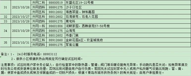 青岛新闻网9月20日讯 今天,记者从东亿能源微信公号获悉,自9月26日起(具体试压时间表附后),崂山区这些小区陆续开始实施供热充水试压,试压后供热设施内会持续保有压力。