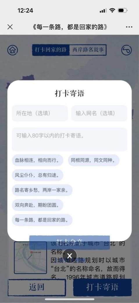 每一条路,都是回家的路。在此,我们邀请全国各地网友通过《回家的路》融媒专题一起参与打卡,分享你与两岸路名之间的故事,传递一句真挚的寄语。