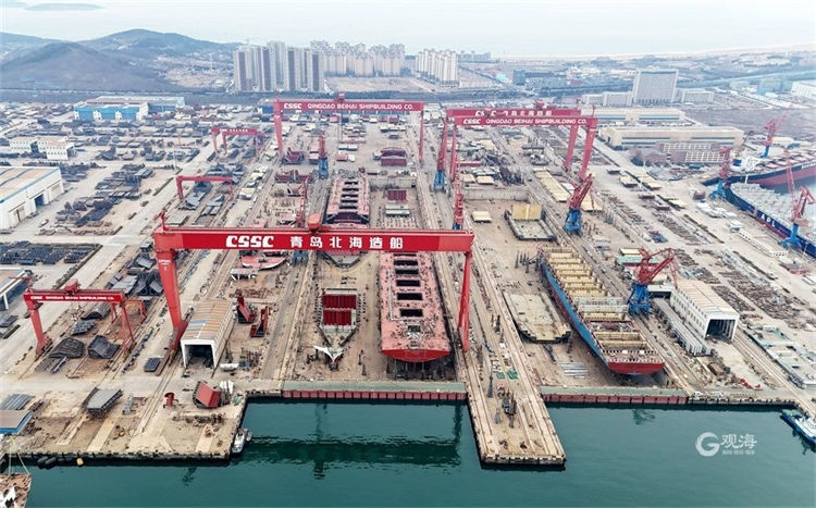 青岛日报社/观海新闻1月17日讯 新年伊始,青岛西海岸新区海西湾船舶海工产业基地一派繁忙,多艘大型船舶同时开工建造。其中北海造船手持订单达到61艘,订单已排至2028年下半年。