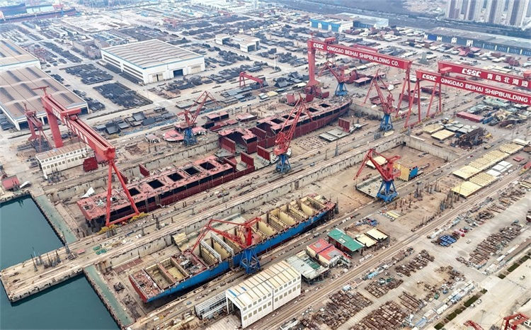 1月16日,青岛西海岸新区海西湾船舶海工产业基地一派繁忙。