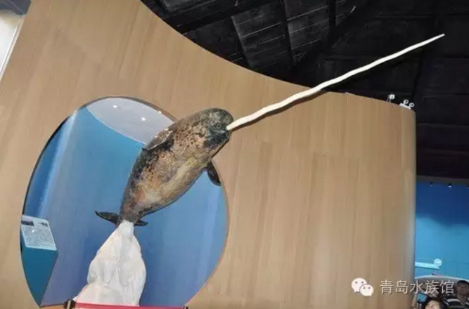 青岛水族馆的镇馆之宝——国内最早展示的抹香鲸标本,是1978年在唐岛湾搁浅死亡的一头13.95米长、22吨重的雄性抹香鲸。同时,青岛水族馆历时3年,花费百万元从加拿大引进一只一角鲸标本。该标本目前是我国唯一一个一角鲸标本。