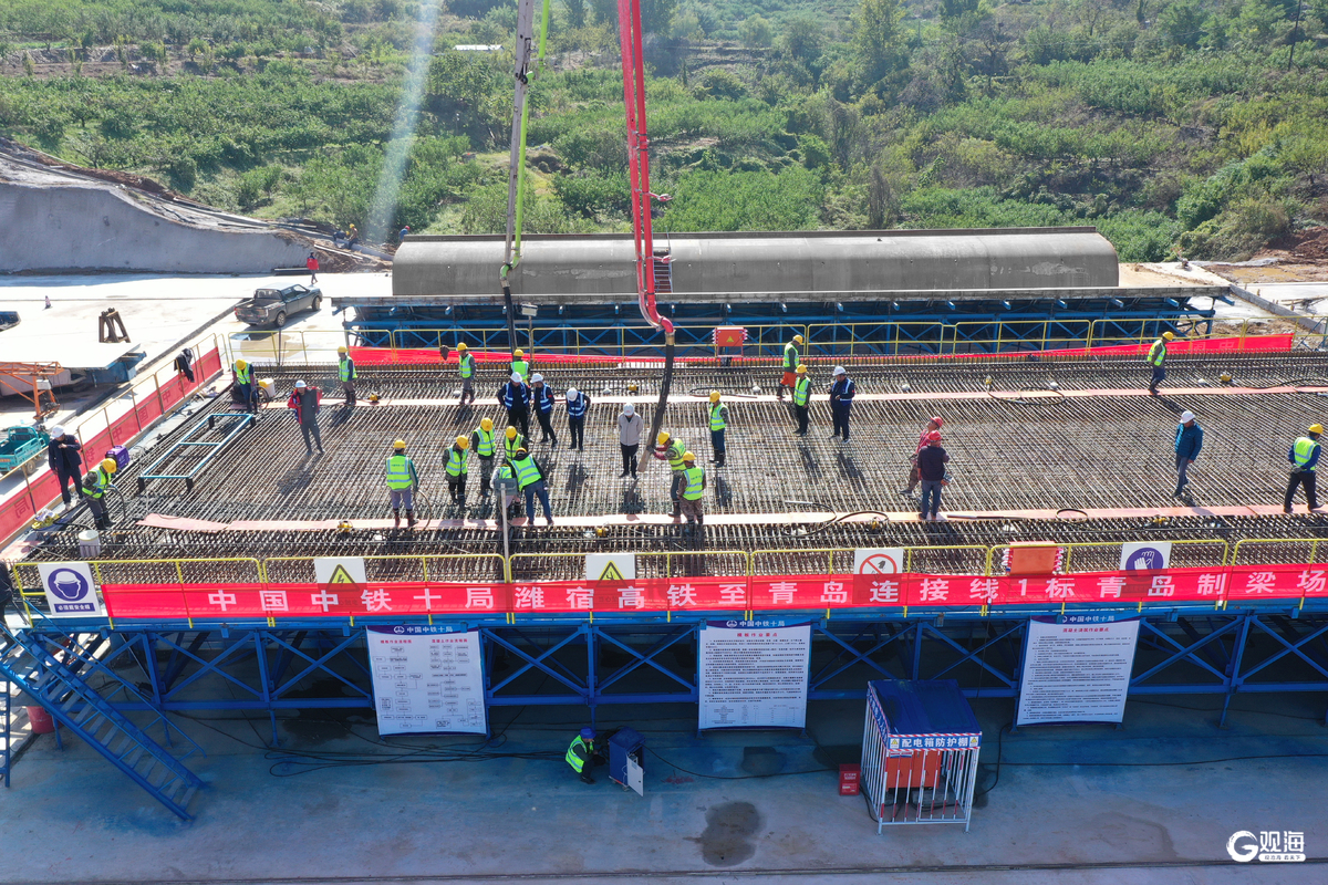 青岛日报社/观海新闻讯 10月23日,由中铁十局承建的潍宿高铁至青岛连接线1标青岛制梁场首榀箱梁顺利完成浇筑。本次顺利浇筑标志着青岛制梁场取得了阶段性的重大进展,为后续大规模箱梁生产奠定了坚实的基础。