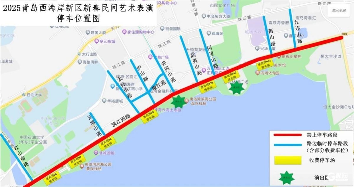 青岛日报社/观海新闻讯 “2025年青岛西海岸新区新春民间艺术表演”定于2025年2月12日(星期三)在唐岛湾北岸(唐岛湾滨海公园-运河广场及唐岛湾步行街)举行。因活动现场内部停车位及活动场地有限,为确保安全,届时公安机关将限制进场车辆和进场人数。11日,青岛市公安局开发区分局交警大队公布唐岛湾北岸外围可停车的路段、区域和停车场。