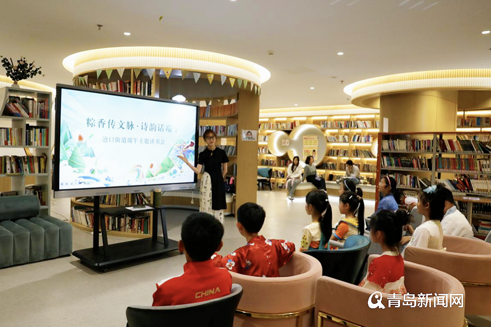 青岛新闻网5月22日讯(记者 孙志文 通讯员 华依倩)为传承中华优秀传统文化,增进青少年对端午节文化内涵的理解,近日,李沧区沧口街道在九力城市书房举办“粽香传文脉 诗韵话端午”主题读书会活动,多名身着传统服饰的儿童积极参与。活动以“小戏小剧”展演为亮点,结合端午民俗体验、经典诵读与情景互动,沉浸式体验端午文化的独特魅力。