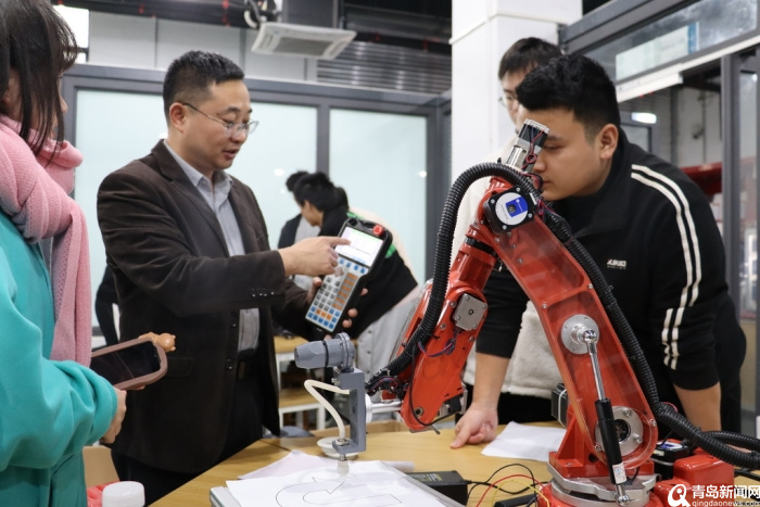 重庆理工大学高端制造装备产业学院教师在指导学生设计电路。