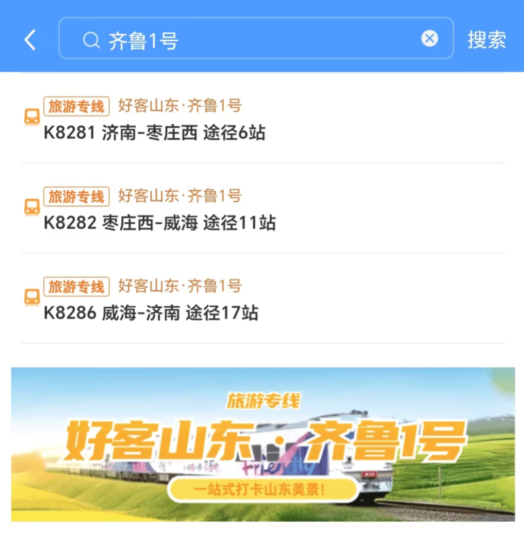 目前,广大旅客朋友可通过铁路12306网站(含手机客户端)、车站售票窗口以及代售点等方式购买相关车次车票。值得注意的是,“好客山东·齐鲁1号”旅游列车在12306订票系统中增加了特色化标识和详细介绍。旅客朋友可以通过搜索列车车次、列车区间以及“齐鲁1号”等方式,均可查看到“好客山东·齐鲁1号”相关信息。