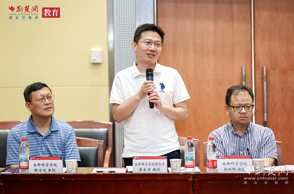 “生物制造是国家未来重点发展领域。请介绍生物学学科的优势与特色。”新京报记者柯锐向湖北大学团队提问。