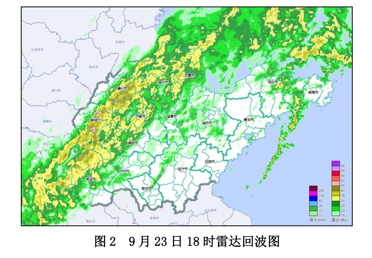 9月23日00时至15时,全市平均降水量22.3毫米,最大点即墨温泉站66.5毫米;各区市分别为,即墨32.7毫米,莱西28.9毫米,胶州27.5毫米,城阳26.7毫米,崂山25.4毫米,平度19.4毫米,市区18.1毫米,西海岸8.7毫米。