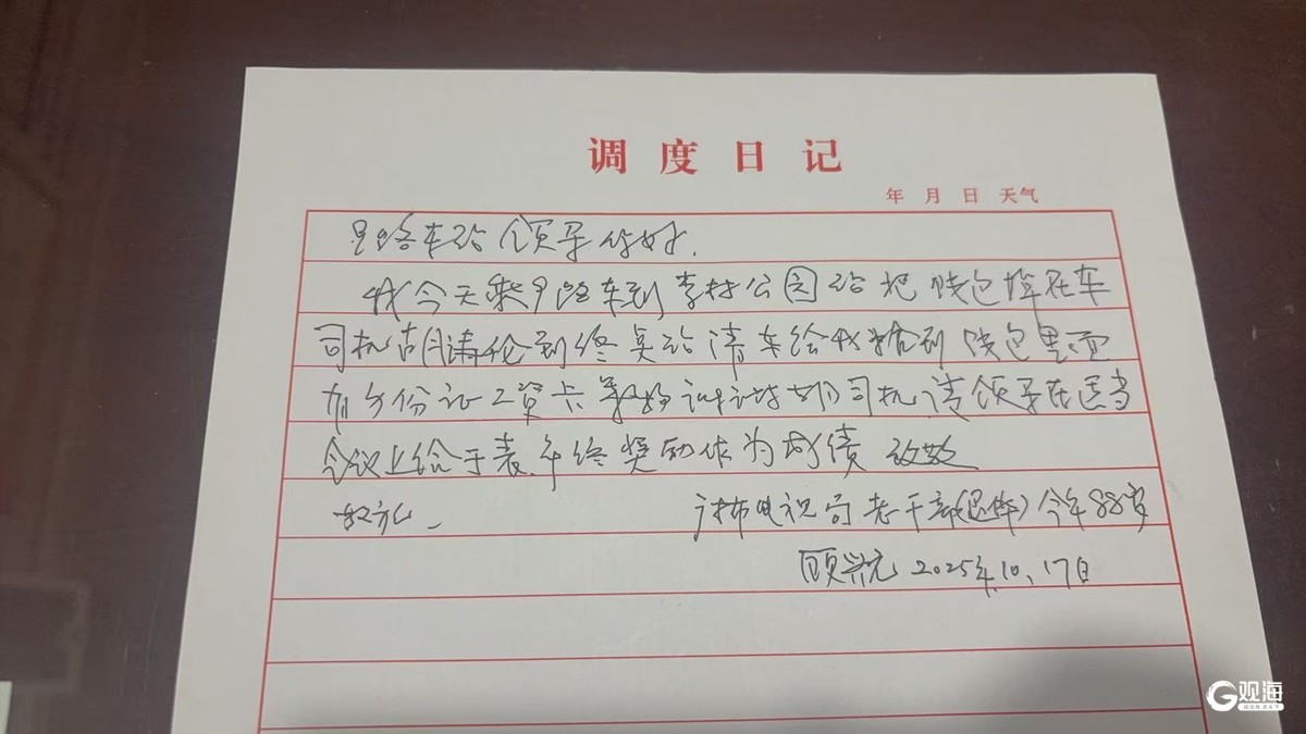 14时许,老人从纪家丽手中接过完好无缺的钱包,激动之情溢于言表,老人当即在现场铺开信纸,写下了一封情真意切的感谢信。这封手写的感谢信,不仅记录了钱包失而复得的经过,更承载着乘客对城运公交人职业精神与善良品格的最高赞誉。
