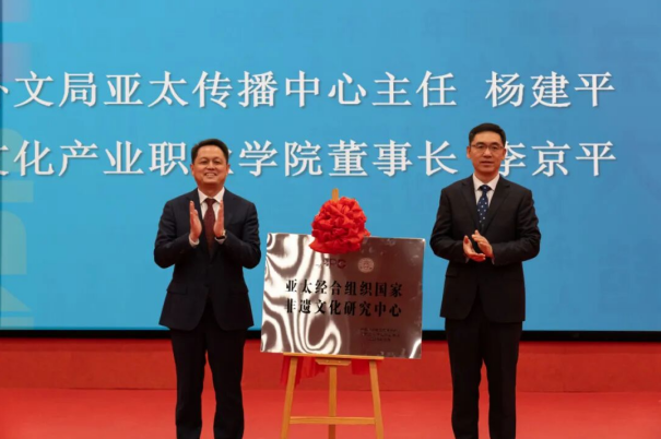 中国外文局亚太传播中心主任杨建平、山东文化产业职业学院董事长李京平共同为“亚太经合组织国家非遗文化研究中心”揭牌,标志着亚太地区非物质文化遗产的保护、传承与创新工作开启崭新篇章。