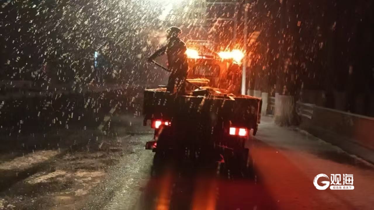 风雪之中,青岛交通人用实际行动践行责任与担当,为这座城市守护着一条条温暖而安全的归家之路、畅通之路。(青岛日报/观海新闻记者 周建亮)