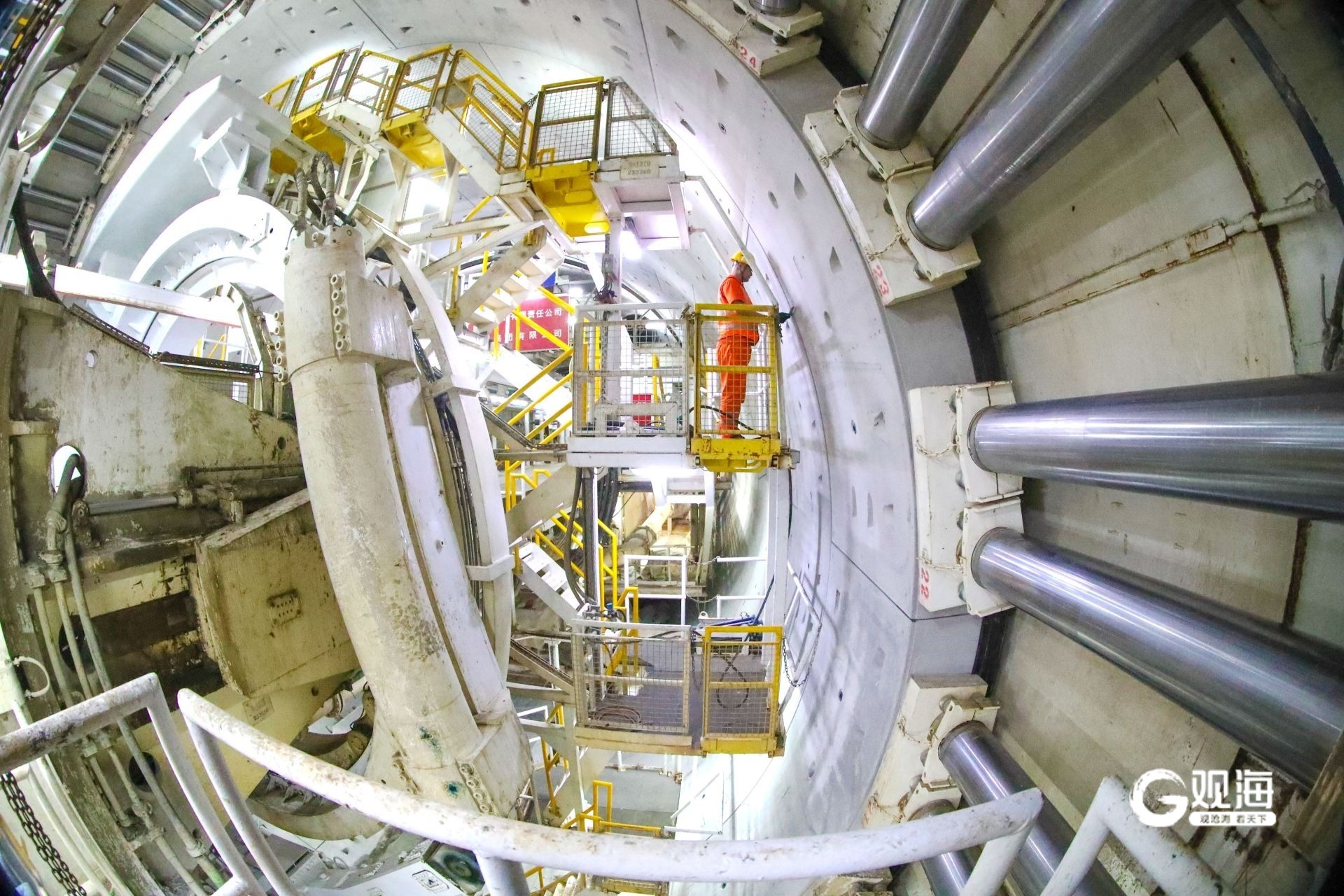 12月15日,在“海天号”盾构机掘进现场,建设者在进行管片螺栓复紧工作。张进刚 摄