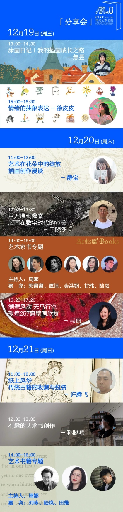 海浪与纸张在此相遇,这个冬季,青岛的港湾迎来了文字与图像的远航。12月19日-21日,由青岛出版集团主办,李沧区委宣传部指导的青岛艺术书展,将在李沧区信联天地·UAC小飞碟数字艺展中心举行。本次艺术书展的分享会,有幸邀请来自中央美院、四川美院、湘南学院的教授学者,以及长期活跃于出版与创作一线的业内专家,与全国优秀插画创作者共聚青岛。