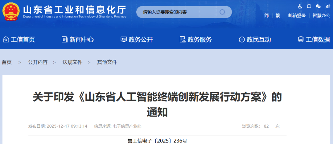 近日,山东多部门联合印发《山东省人工智能终端创新发展行动方案》(以下简称《方案》)。