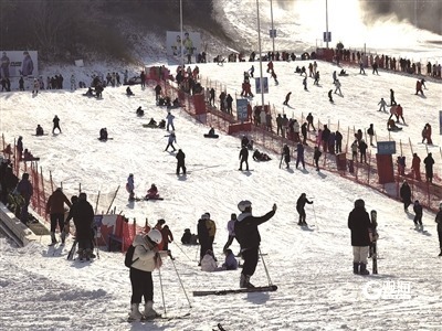 元旦假期,藏马山滑雪场迎来大批游客。于滈 摄