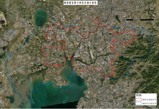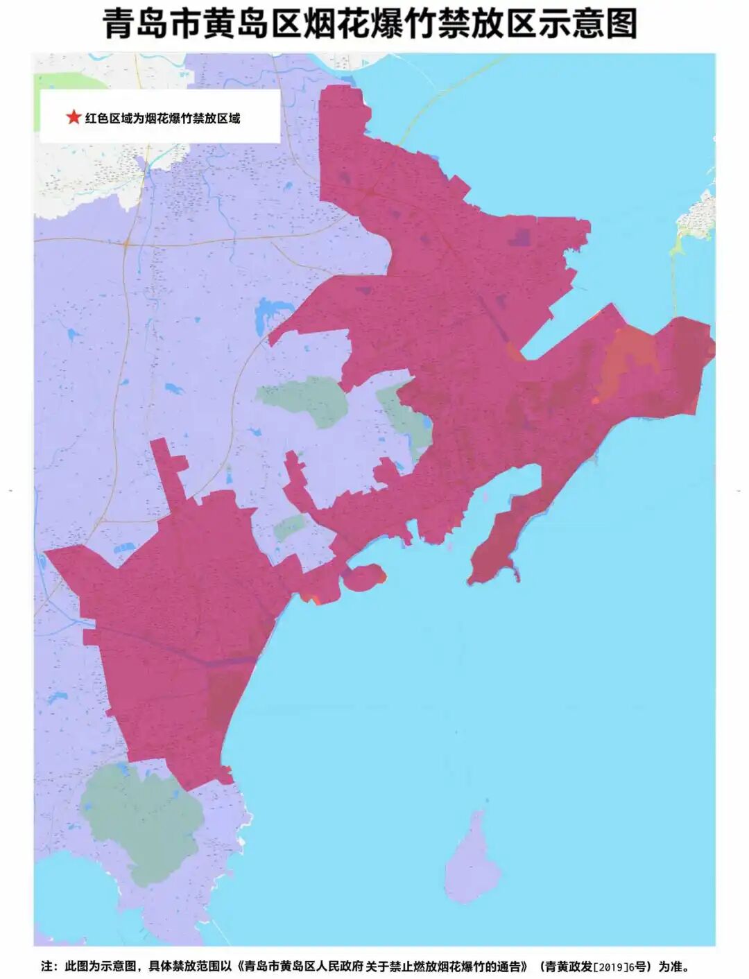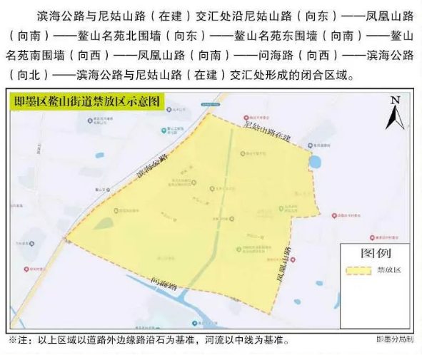 面向海洋的方向,以海岸线为边界,内陆区域以道路、河流、山川为边界,内含区域即为禁售禁放烟花爆竹的区域范围: